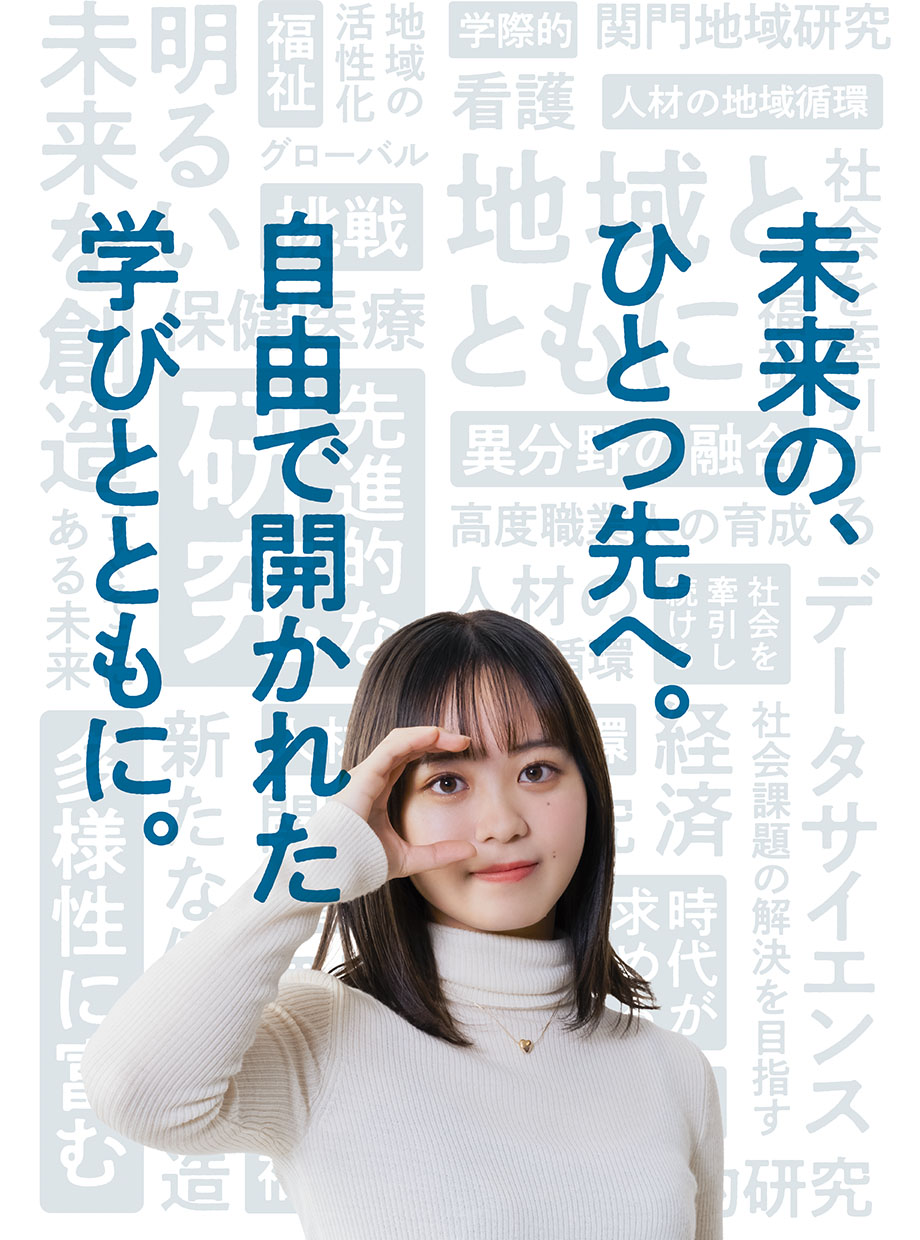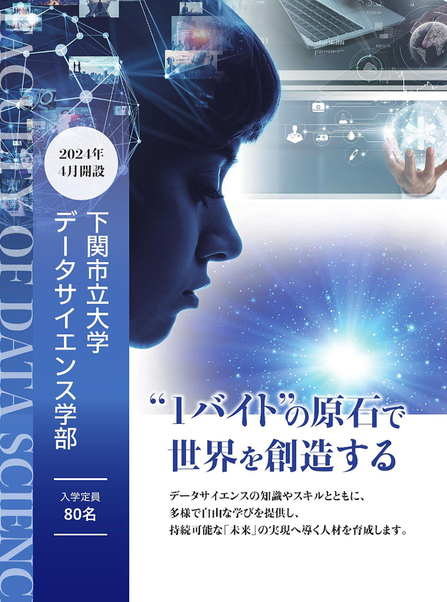 膨大に蓄積されたビッグデータを活用できる人材は、今後官民問わず、幅広い分野で求められます。下関市立大学データサイエンス学部では、データサイエンスの知識やスキルとともに、多様で自由な学びを提供し、持続可能な「未来」の実現へ導く人材を育成します。