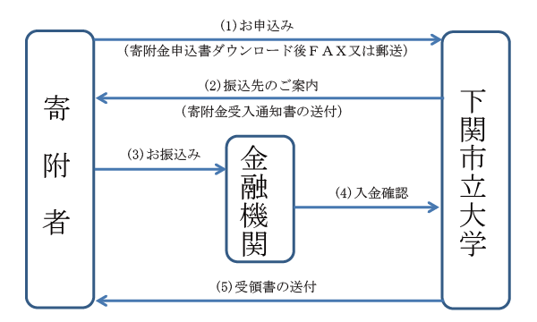 寄附金申込書が確認でき次第、振込先が記載された寄附金受入通知書を送付いたします。