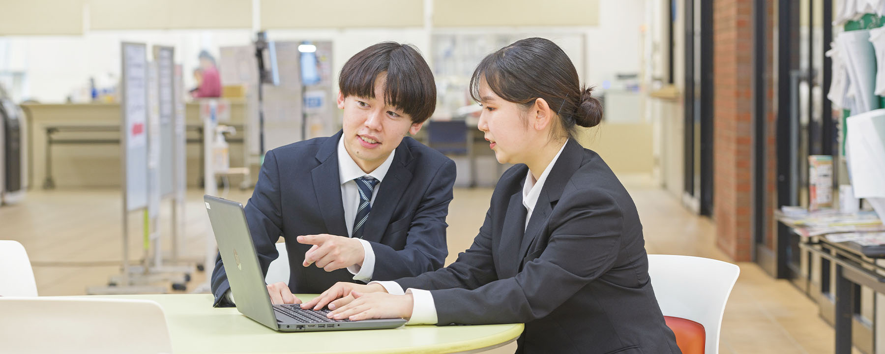 3年次の夏に参加したインターンシップで金融業界に魅力を感じ、金融に絞って就職活動を進めました。学内合同業界研究会では担当者の方と直接話し、企業に対する理解や就職活動のイメージを深めることができ、面接ではより具体的に志望動機を話すことができました。将来は、政策金融を担う者として政策とお客様を融資で繋ぎ、地域経済の発展や国民生活の向上に貢献していきたいです。
