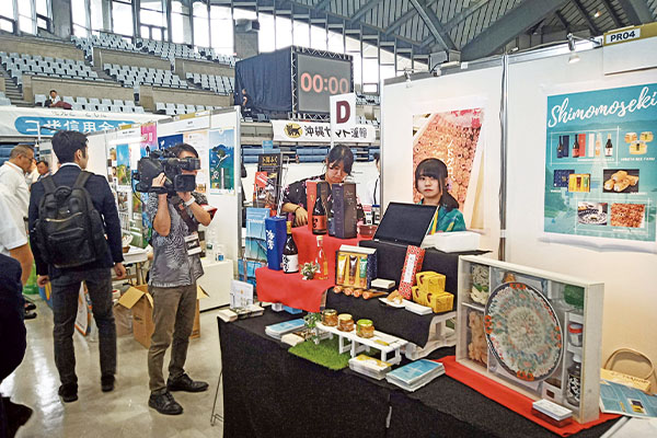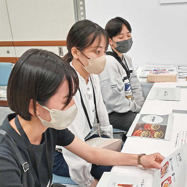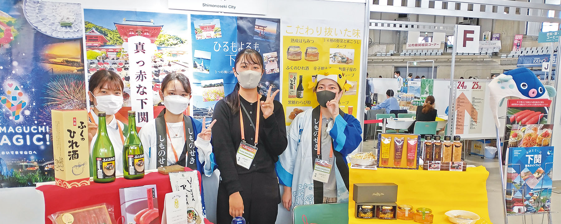 2年生と3年生の7人で国際食品商談会に参加し、下関市の食品のPRや商談を行いました。この日のために半年かけて、商品理解を深めるためのヒアリングや商品研究として企業見学を行い、自分の言葉で商品の魅力が伝えられるよう工夫しました。2年生を中心にポスターを、3年生を中心に商談資料を作成し、ブースもバイヤーの目を引くような陳列やデザインを考えるなど、チームで協力して取り組みました。