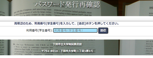 | 教員 | A***** ※図書館利用者証の英数字 |