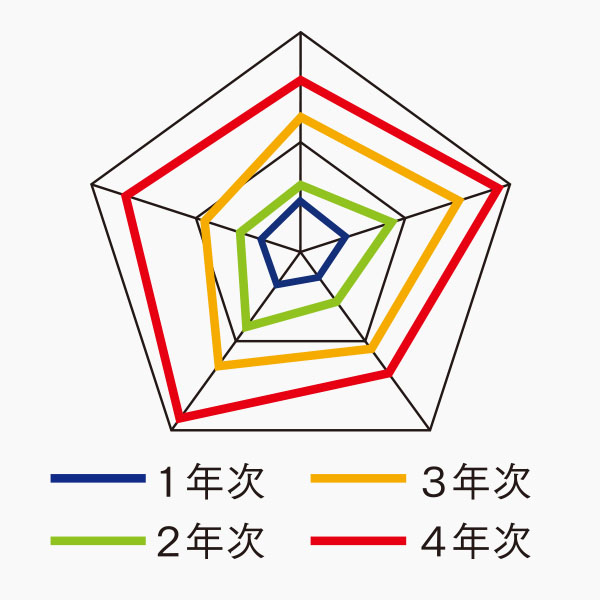 下関市立大学は、地域社会及び国際社会の発展に寄与することのできる知識・能力等を身につけた、バランスのとれた教養豊かな高度職業人の養成を行います。また、新たに開発した指標『ESLO(エスロ)』を使って学生一人ひとりの強みや学びの伸びしろを可視化しています。